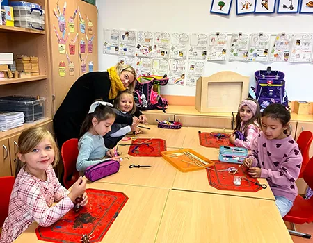 Fotogalerie: Eltern und Kinder der Klasse 1c beim gemeinsamen Basteln.