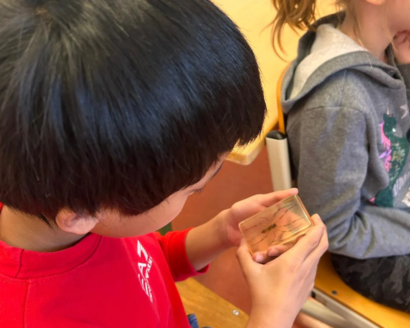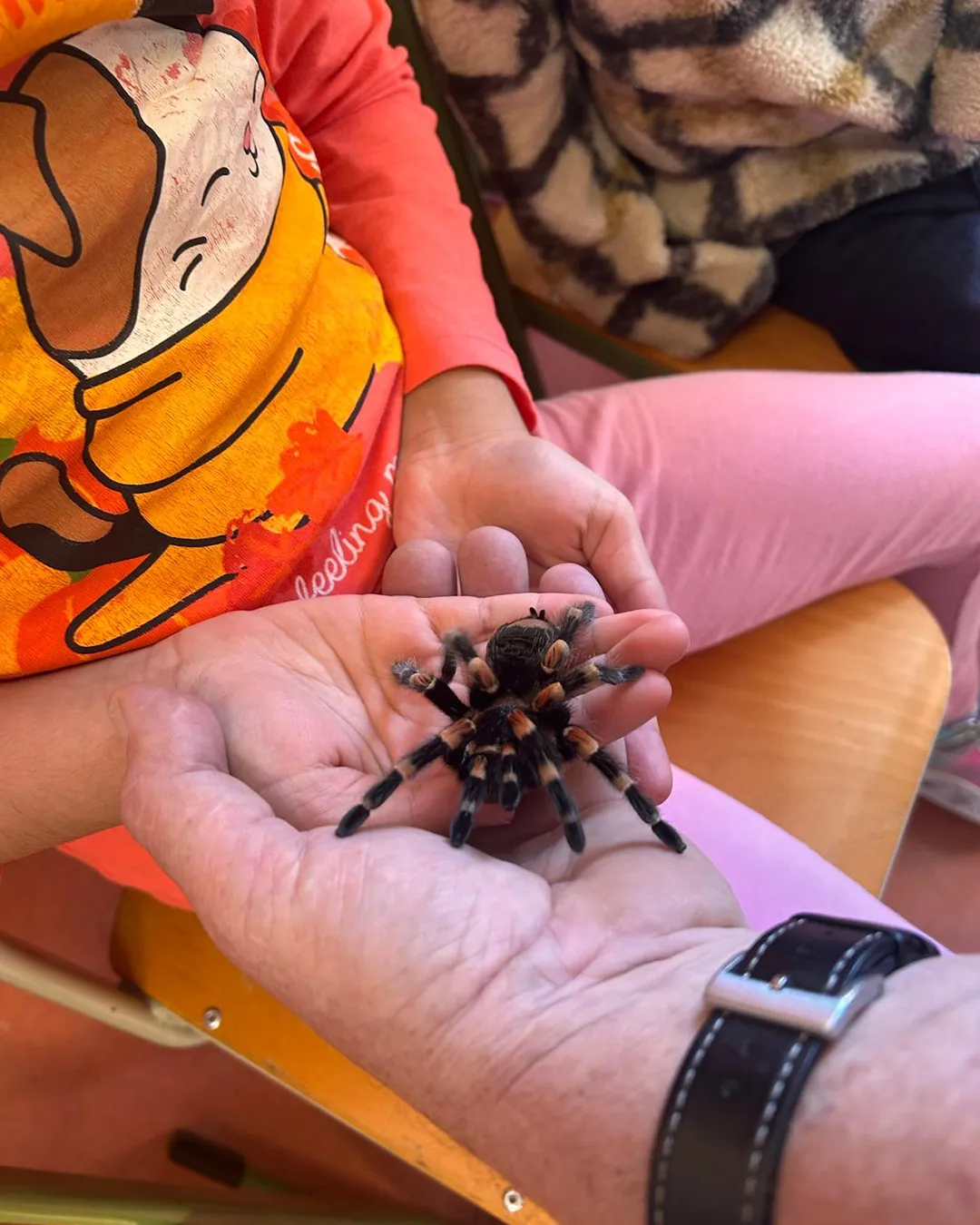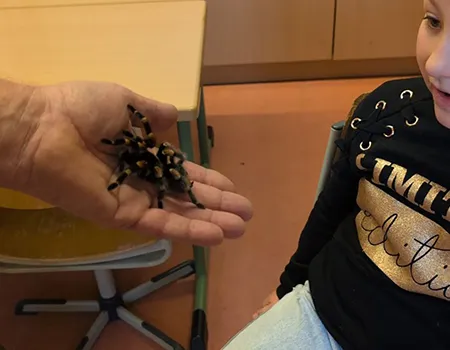 Fotogalerie: Herr Dr. Loksa zeigt den Kindern aus dem zweiten Jahrgang verschiedene Spinnenarten und seine Vogelspinne Klara.