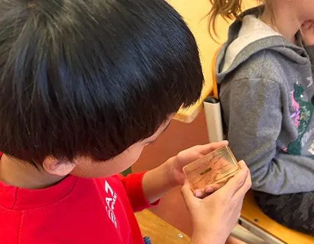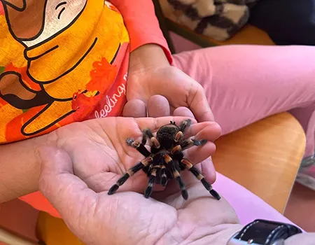 Verschiedene Spinnenarten werden entweder in einem Röhrchen gezeigt oder den Kindern direkt auf die Hand gesetzt.