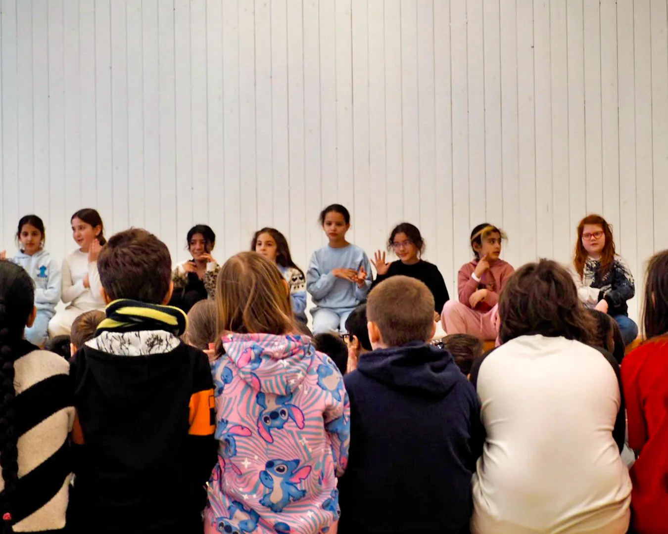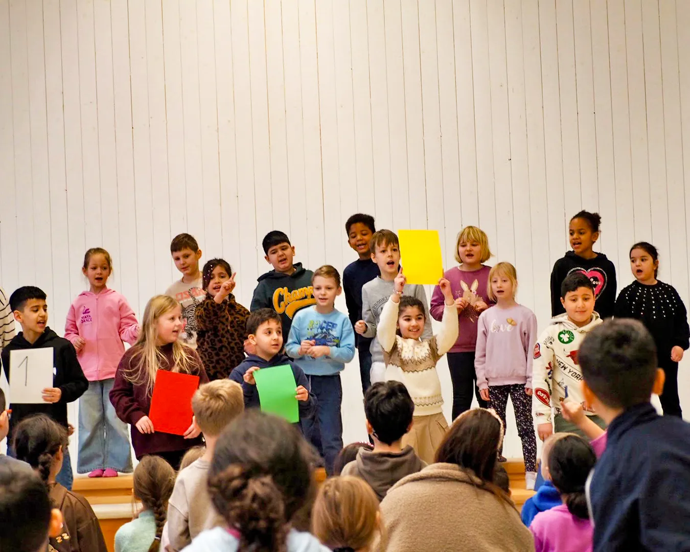 Im Februar 2026 standen sowohl der Chor aus Jahrgang 2, als auch der aus Jahrgang 3 und 4 auf unserer improvisierten Bühne!