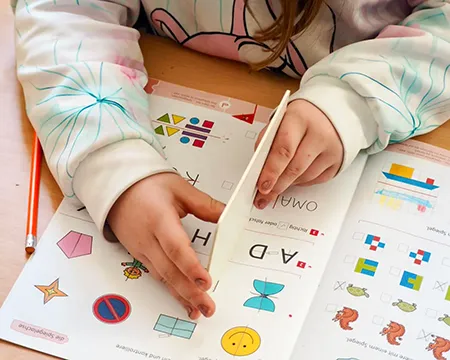 Zuerst haben sie an der Tafel geübt. Danach durften sie im Arbeitsheft schreiben und das Gelernte anwenden. So macht Deutschlernen Spaß!