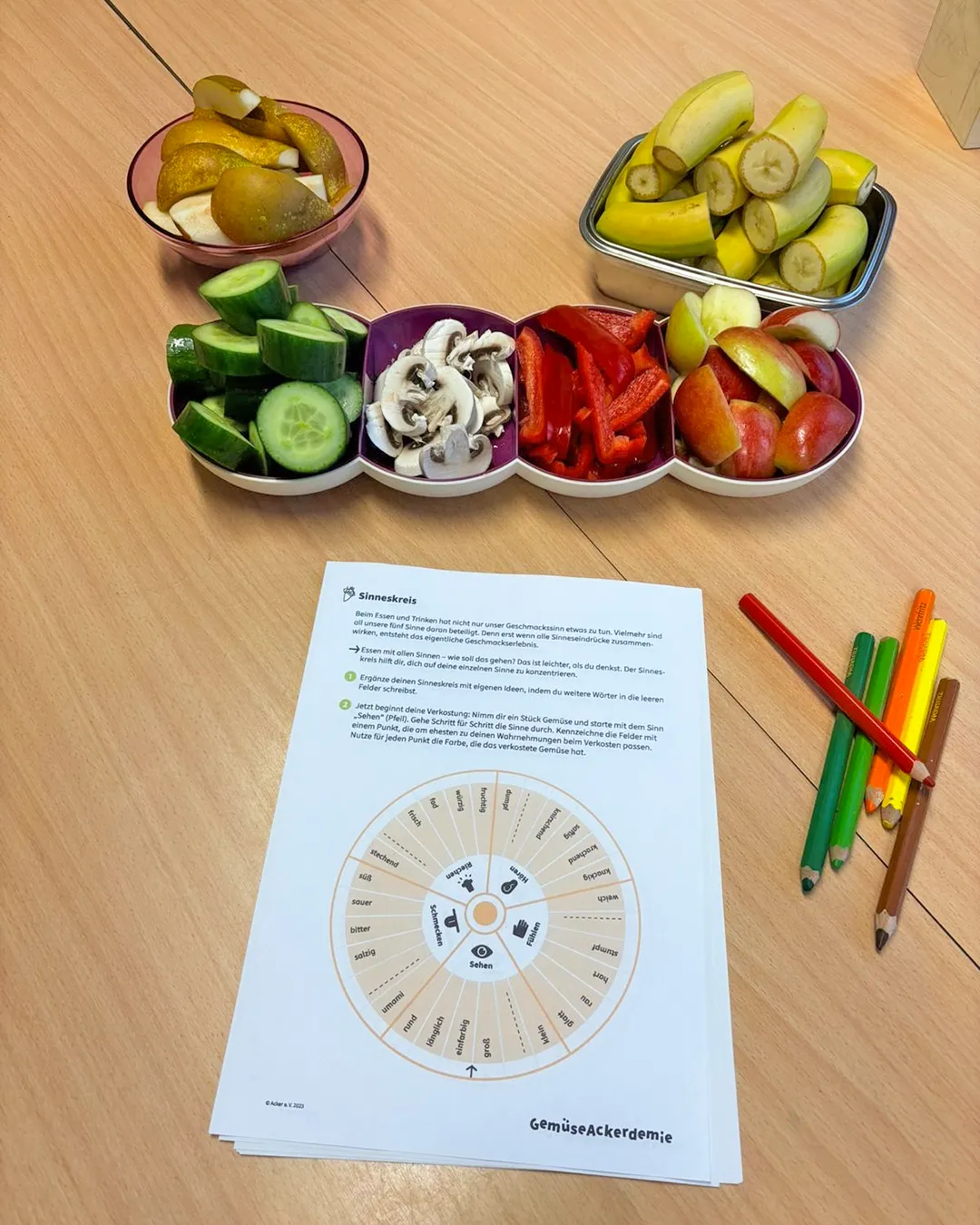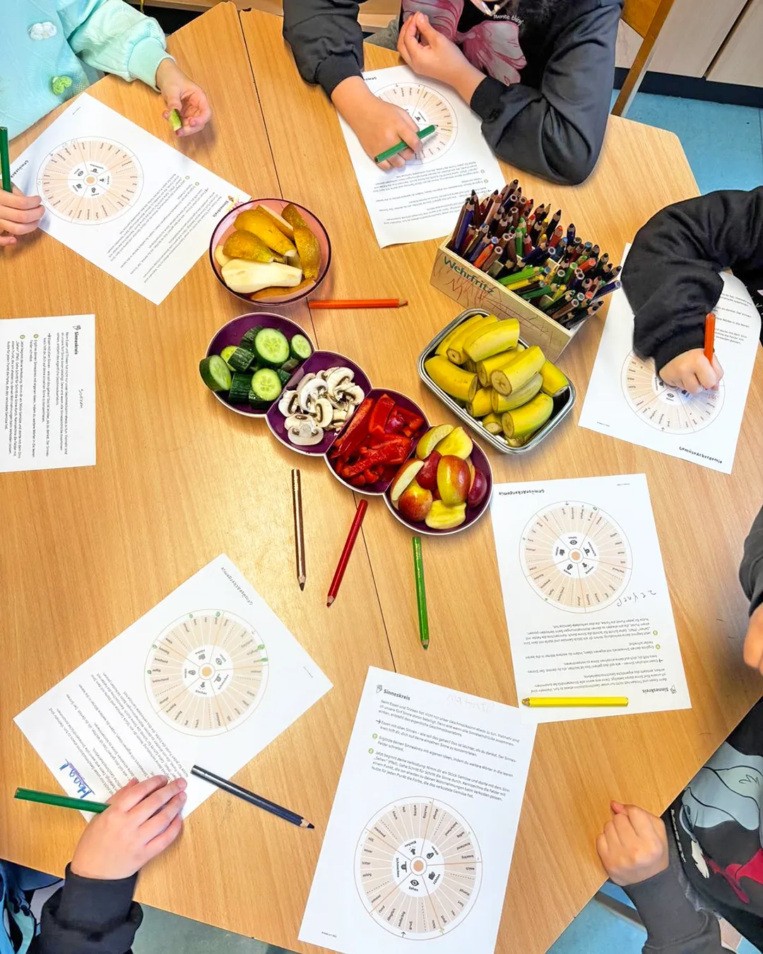 So lange der Winter noch nicht vorbei ist, gibt es für die Schüler:innen der AckerAG praktischen Input im Gebäude. Heute: Der Sinneskreis.