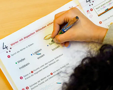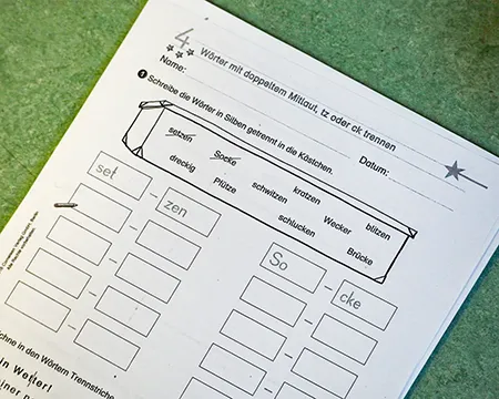 Im dritten Jahrgang werden im Deutschunterricht gerade doppelte Mitlaute im wahrsten Sinn des Wortes auseinander genommen.