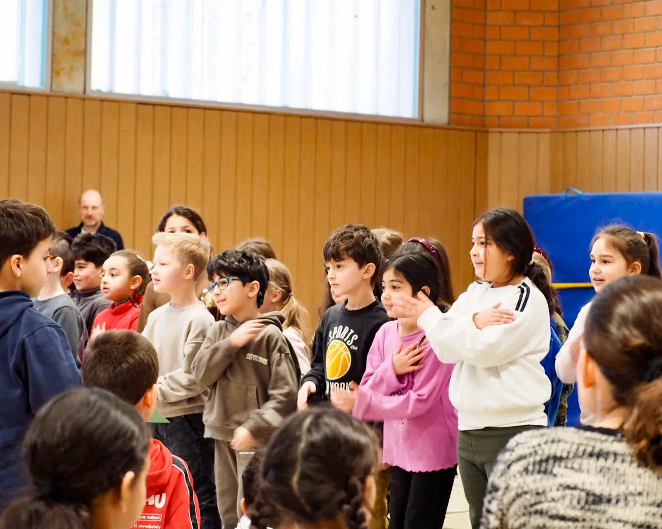 Im Februar 2026 standen sowohl der Chor aus Jahrgang 2, als auch der aus Jahrgang 3 und 4 auf unserer improvisierten Bühne!