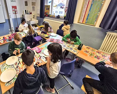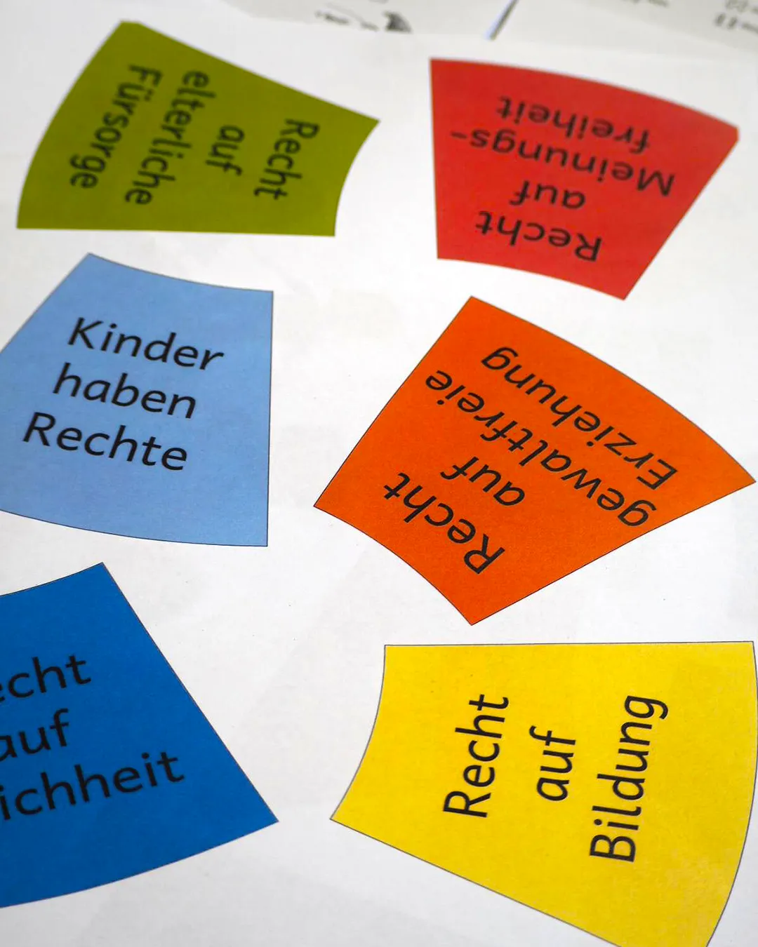 Neben Themen rund um den Schulalltag geht es auch um die eigenen Rechte als Kind. In der vergangenen Sitzung haben die Klassenvertreter:innen aus allen Klasse Legekreismaterialien zum Thema „Kinderrechte“ bekommen, die sie als Klassengemeinschaft gerne gemeinsam bearbeiten und anschließend aufhängen sollen.