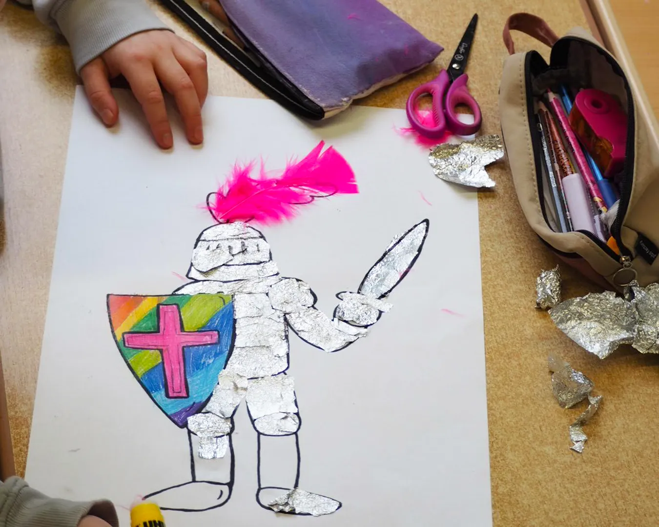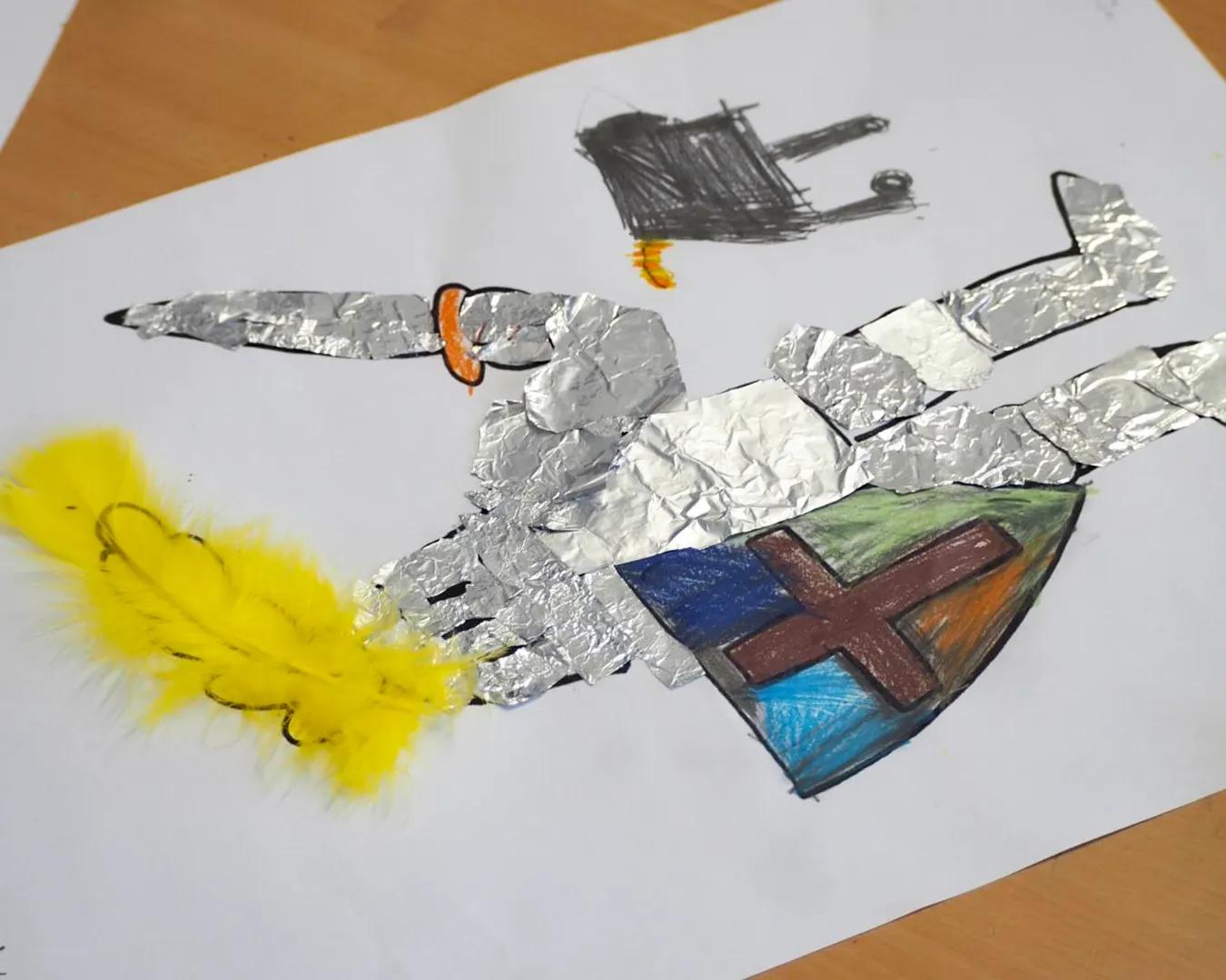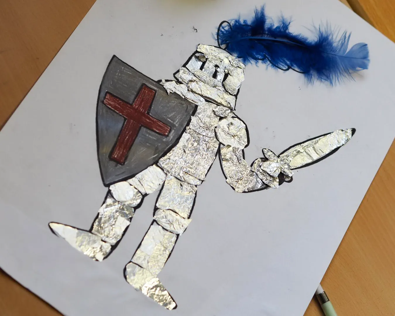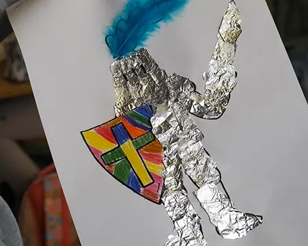Im dritten Jahrgang hält das Mittelalter gerade Einzug. Neben dem Bauen von Burgen und allerlei Wissenswertes über Ritter, Könige und Prinzessinnen wurde im Kunstunterricht ein eigener Ritter in strahlender Rüstung gestaltet.