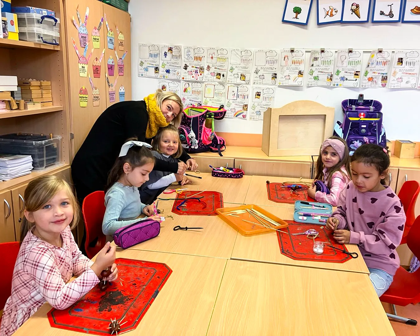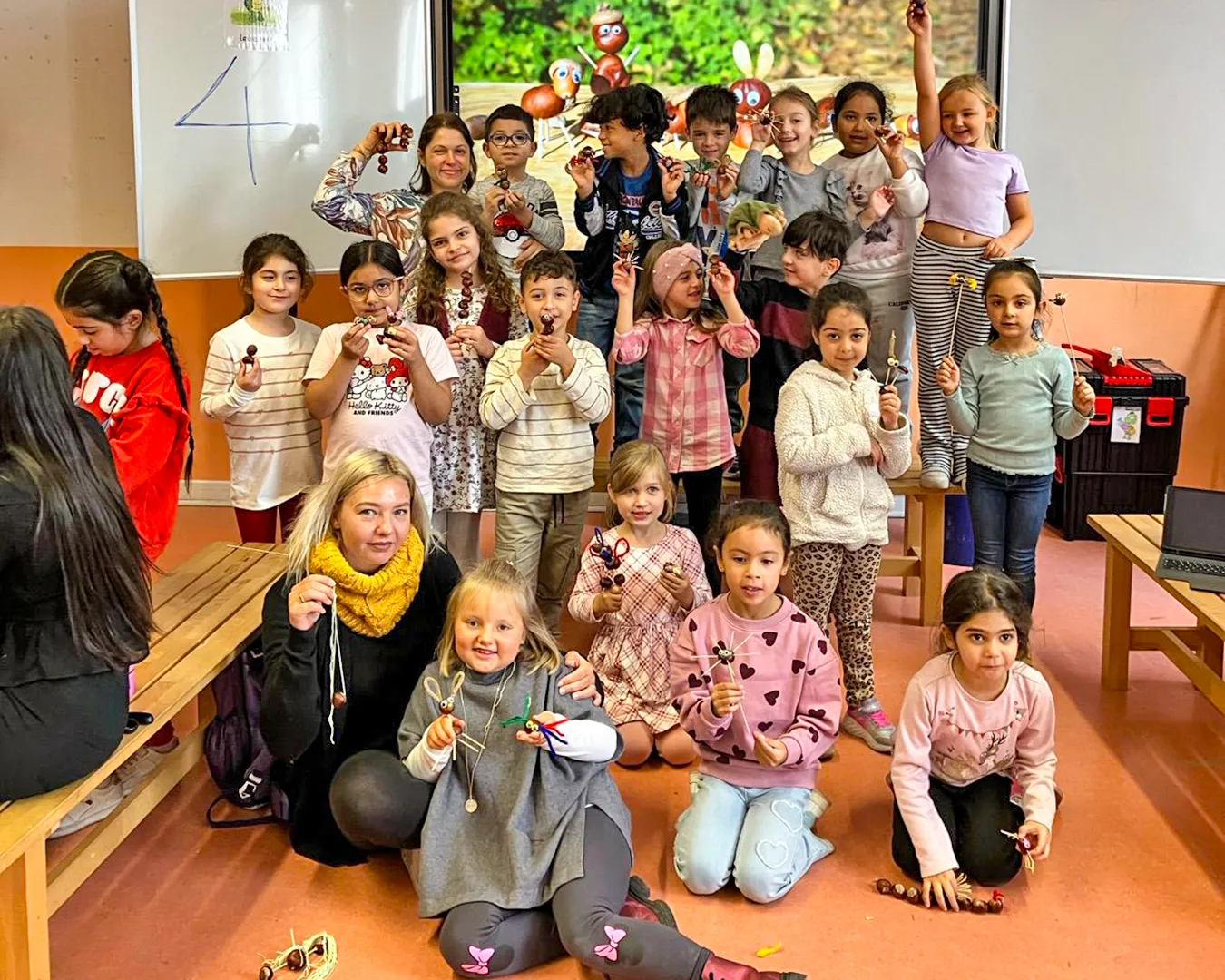 Die Eltern der Kinder waren da und haben gemeinsam mit ihren Kindern Kastanientiere gebastelt und so den Herbst gebührend einläuten!